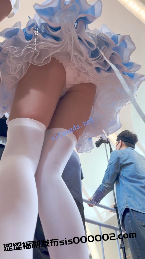 游乐园抄底蕾丝白裙小姐姐,无痕粉内屁股光滑好想摸.